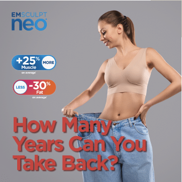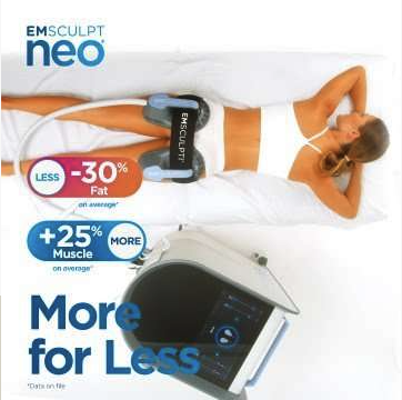 EMSCULPT NEO’s revolutionary design is the first of it’s kind to both remove fat and tone muscle in just a 30 minute session without the use of any surgical equipment. The same technology used in the original EMSCULPT treatment (one of the first unique treatments for muscle toning) is also represented through EMSCULPT NEO – but with the added benefit of permanent FAT cell elimination!